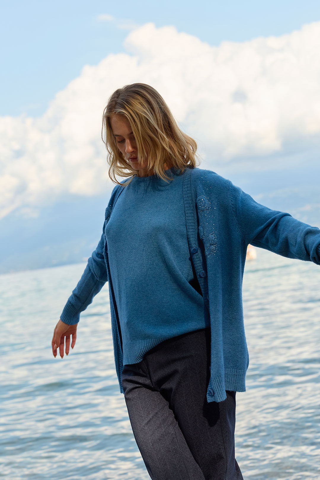 Nella nostra nuova collezione Autunno Inverno 2025/26, troverai anche morbide sfumature del blu e dell’azzurro. Dai cieli tersi e luminosi di una mattina d’autunno al blu profondo e misterioso del crepuscolo invernale, ogni capo è stato pensato per avvolgerti in un’atmosfera di calma e sofisticata bellezza.